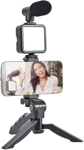 Generic - حامل ثلاثي القوائم AY-49- لتصوير الفيديو - مع ميكروفون - اضاءة للبث المباشر