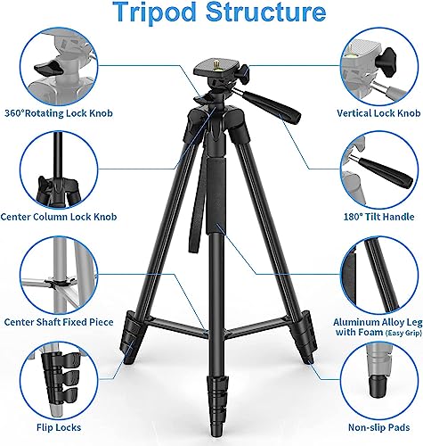 - 【حامل ثلاثي القوائم قابل للتمدد】: يمتد من 44 سم إلى 1.6 متر مع أقفال أرجل سريعة قابلة للتعديل وعمود متوسط قابل للتمدد، يتكيف حامل الكاميرا ثلاثي القوائم بالكامل مع مجموعة من الارتفاعات المختلفة مع قفل لوحة القفل، ويتيح لك إنشاء ارتفاع ورؤية فريدين أثناء التقاط صورة أو فيديو.