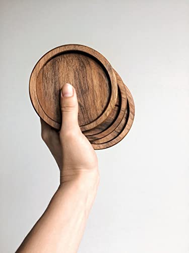 Trisha Decor - طقم قواعد اكواب خشبية دائرية من تريشا ديكور، 4 قطع (خشب شيشام) (دائري)