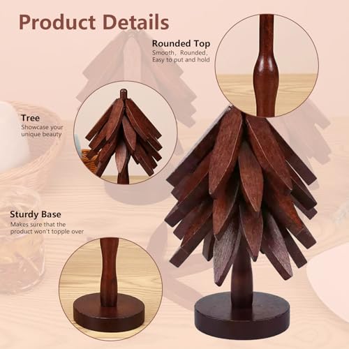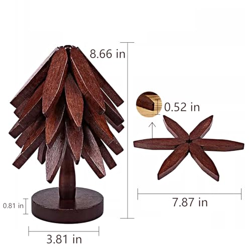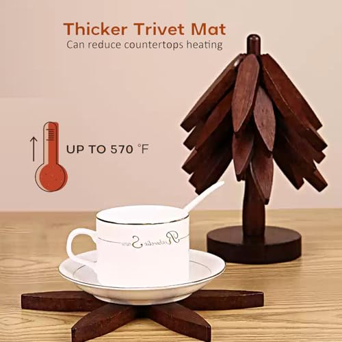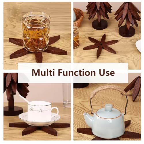 xpqkdc - حوامل للاطباق الساخنة، 5 حوامل خشبية + 1 حامل، حامل خشبي على شكل شجرة عيد الميلاد - حوامل مطبخ طبيعية قابلة للطي للاطباق الساخنة، الاصيص، البول، ابارق الشاي، الاواني الساخنة، المقالي