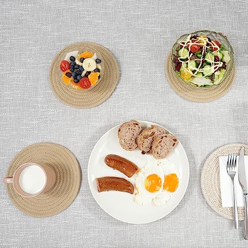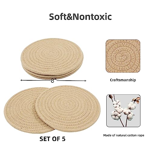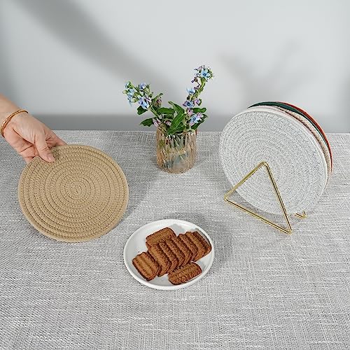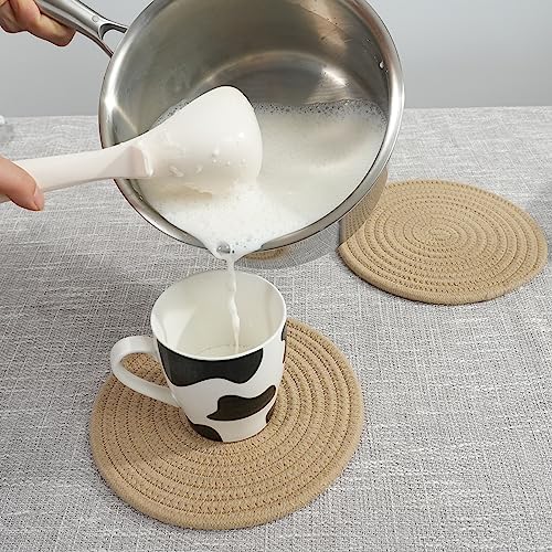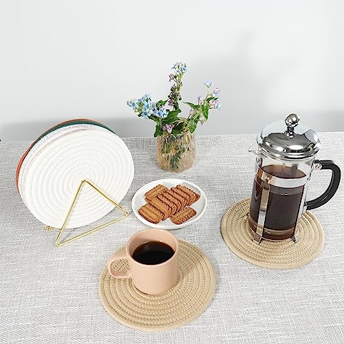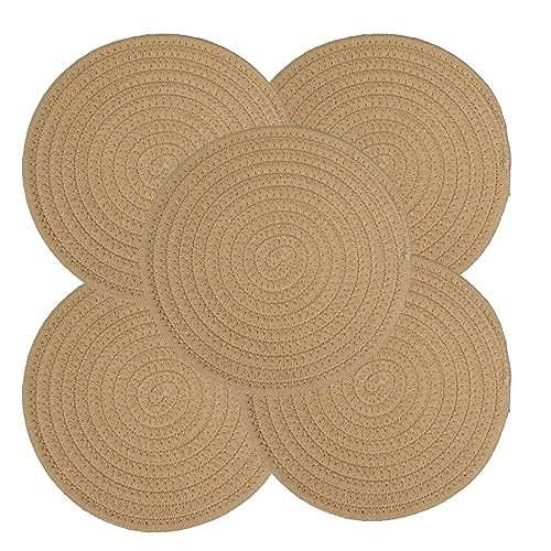 JUNBOLE - حامل أواني من القطن للأطباق والطاسات وأباريق الشاي والبولات، قاعدة للأواني الساخنة مقاس 20.3 سم، طقم 5 قطع، لون كاكي