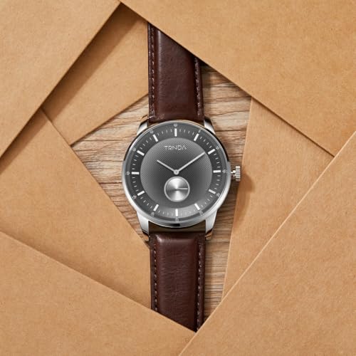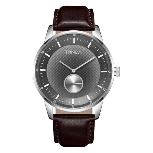 TRNDA - ساعة من الفولاذ المقاوم للصدأ للرجال من ترندا - مينا أنيقة بألوان متدرجة وسوار جلدي بلون بني
