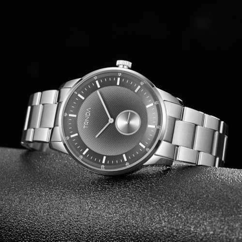 TRNDA - ساعة تايم بيس عصرية للرجال من الفولاذ المقاوم للصدأ من ترندا، هيكل ذهبي لا يتأثر بمرور الزمن مع مينا رمادي فاتح متدرج