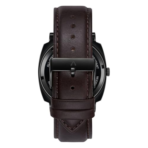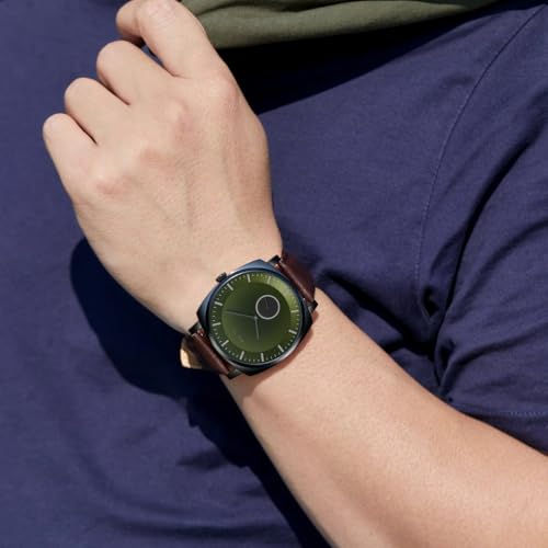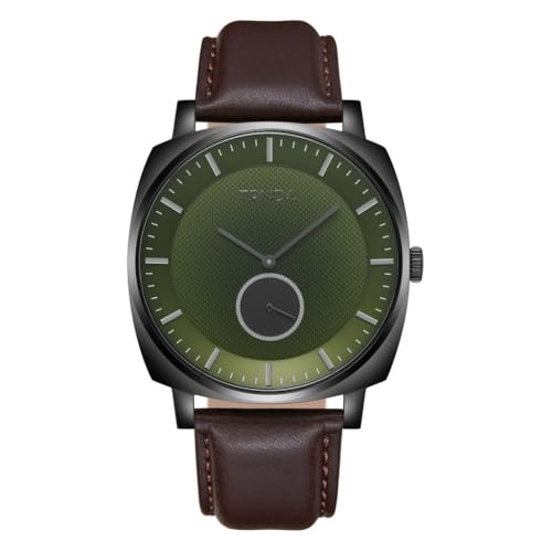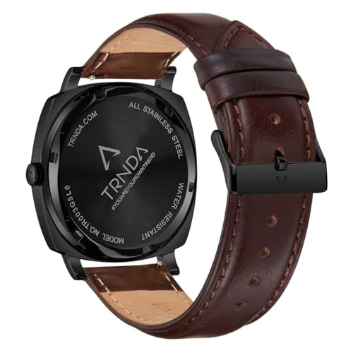 TRNDA - ساعة مربعة سوداء من الستانلس ستيل للرجال من ترندا - مينا اخضر بحري وسوار جلدي بني