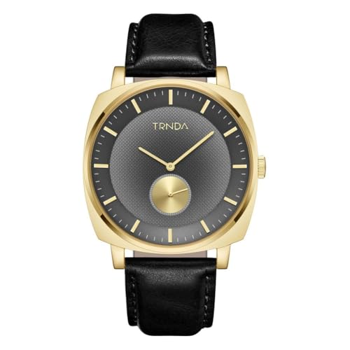TRNDA - ساعة مربعة ذهبية من الستانلس ستيل للرجال من ترندا - مينا رمادي فاتح انيق وسوار جلد اسود