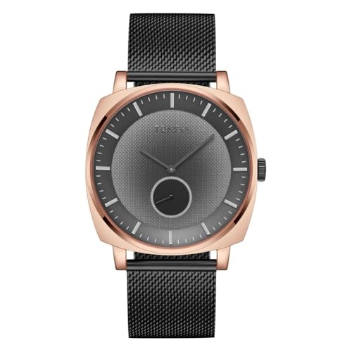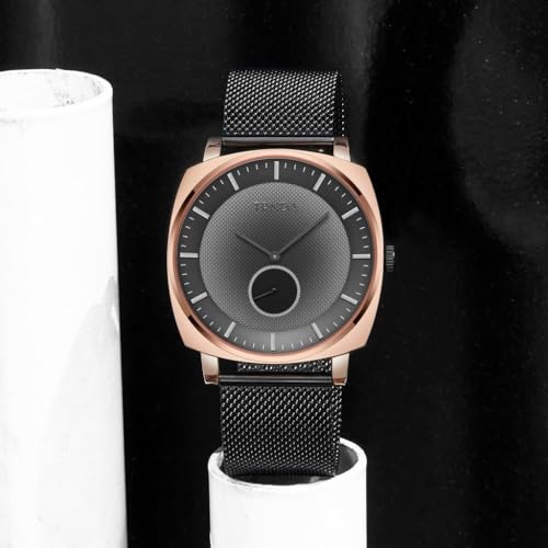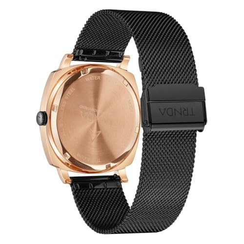 TRNDA - ساعة مربعة بلون ذهبي وردي شبكي للرجال من ترندا - ساعة عصرية من الفولاذ المقاوم للصدأ بمينا رمادي متدرج