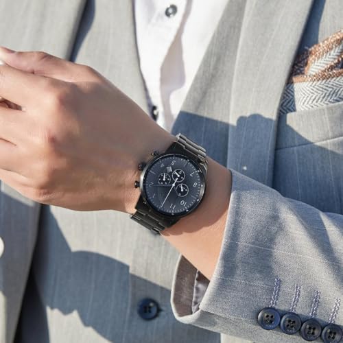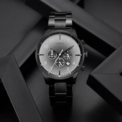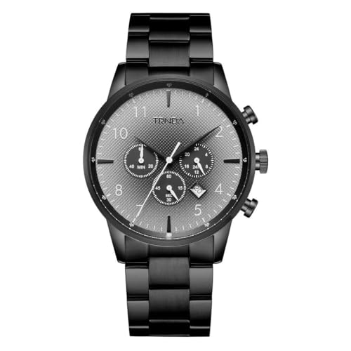 TRNDA - ساعة من ترندا من الفولاذ المقاوم للصدأ بمينا أسود رجالي - تصميم عصري لا يتأثر بمرور الزمن