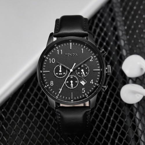 TRNDA - ساعة ستانلس ستيل للرجال من ترندا - مينا اسود رصاصي انيق وسوار جلد