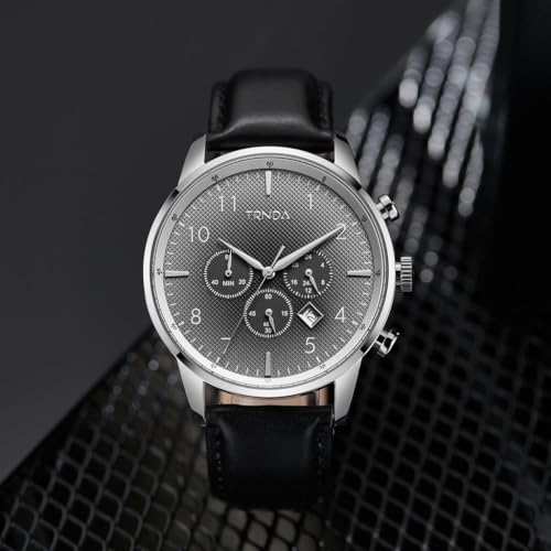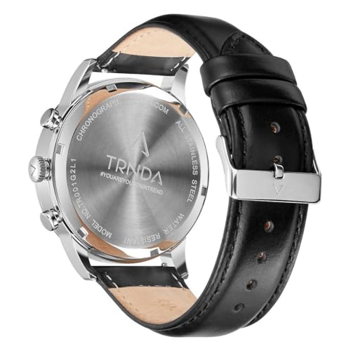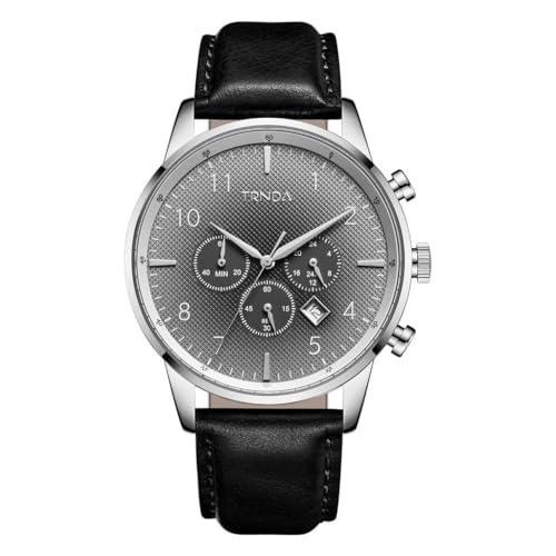 TRNDA - ساعة ستانلس ستيل للرجال من ترندا - مينا متدرج انيق وسوار من الجلد، تصميم لا يتأثر بمرور الزمن