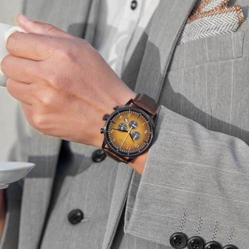 TRNDA - ساعة رجالي بمينا متدرج اللون من الفولاذ المقاوم للصدأ من ترندا، ساعة عصرية لا تتأثر بمرور الزمن بلون أسود وبني