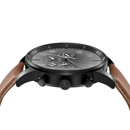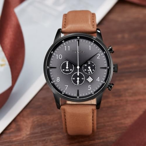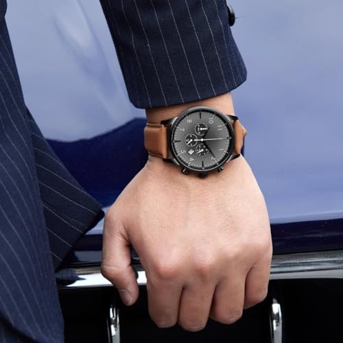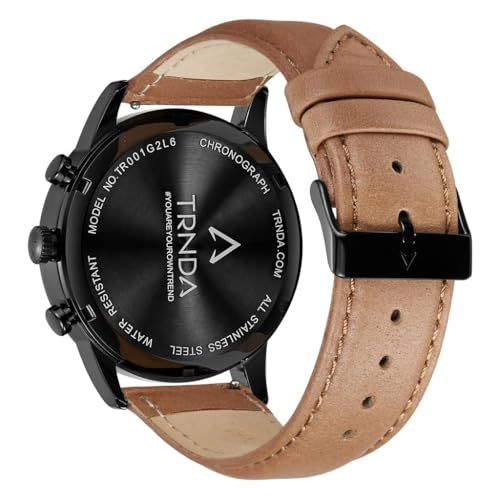 TRNDA - ساعة من الفولاذ المقاوم للصدأ للرجال من ترندا - تصميم عصري من الجلد الأسود والبيج الغامق 43 ملم