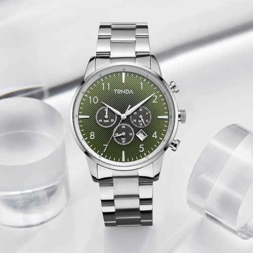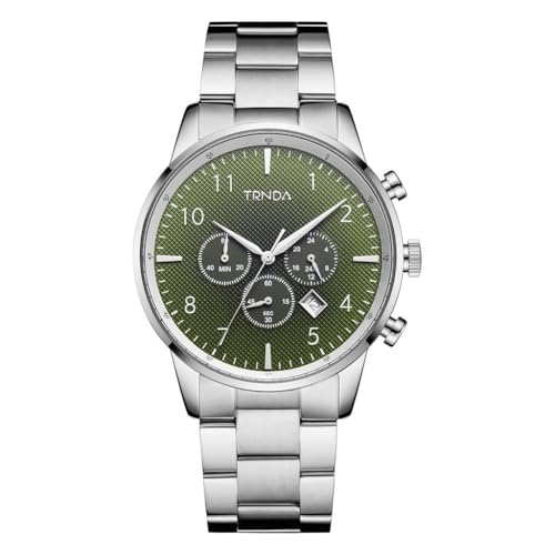 TRNDA - ساعة ستانلس ستيل للرجال من ترندا - مينا اخضر من عشب البحر الانيق - تصميم عصري لا يتأثر بمرور الزمن
