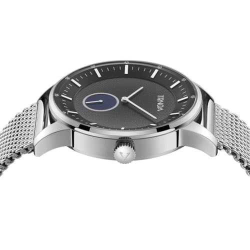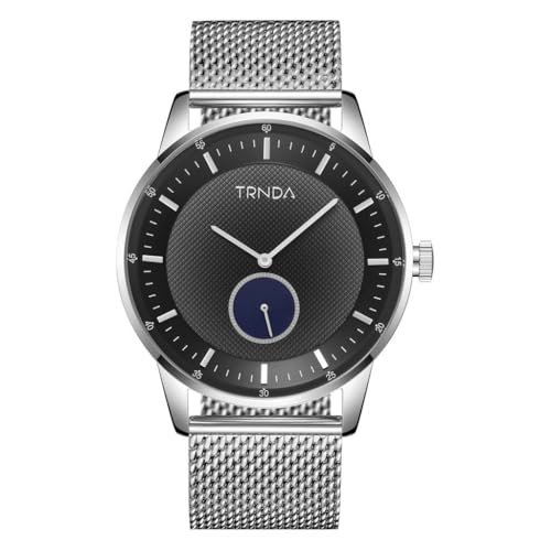 TRNDA - ساعة ستانلس ستيل للرجال من ترندا - مينا رمادي متدرج لا يتأثر بمرور الزمن وسوار شبكي فضي