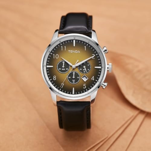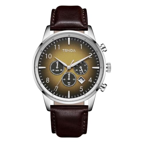 TRNDA - ساعة ستانلس ستيل للرجال من ترندا - نمط لا يتأثر بمرور الزمن مع مينا بني سيدار متدرج وسوار جلدي