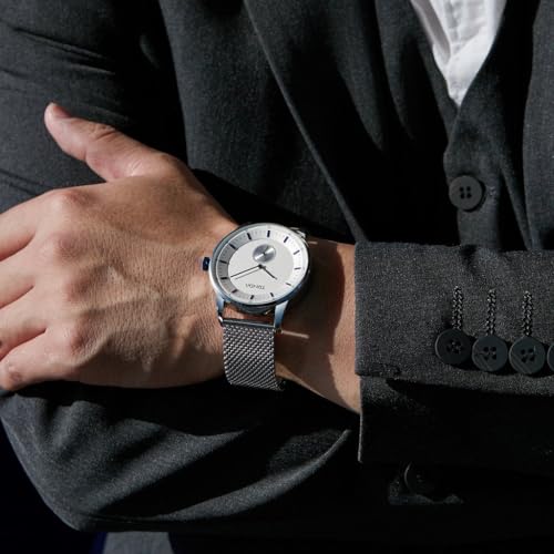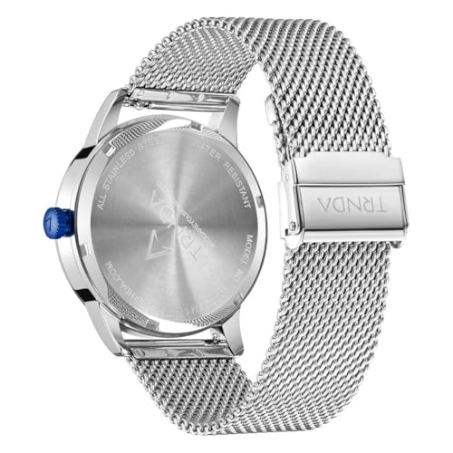 TRNDA - ساعة ستانلس ستيل للرجال من ترندا - أناقة في الوقت المناسب مع سوار شبكي فضي ومينا ازرق