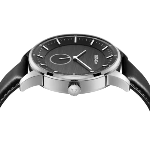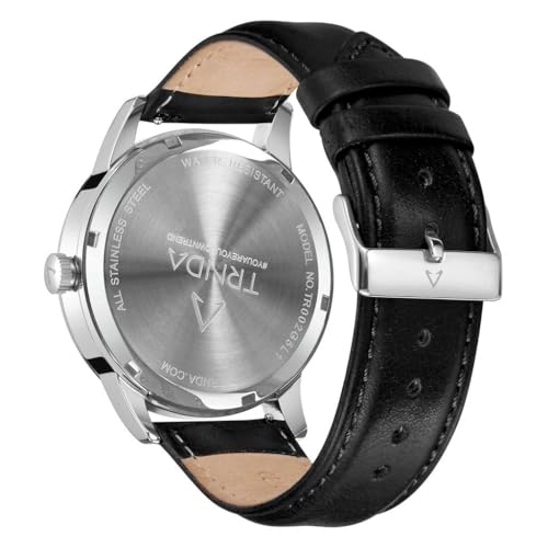 TRNDA - ساعة تايم بيس ستانلس ستيل من ترندا - ساعة أنيقة بمينا أسود وسوار جلدي للرجال
