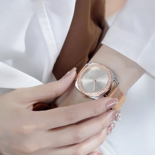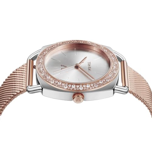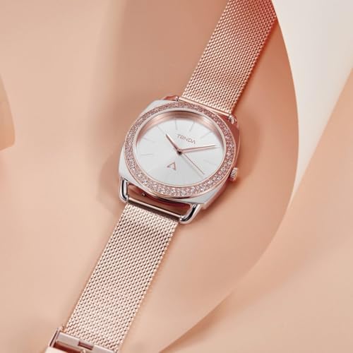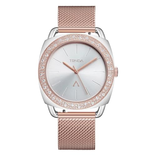 TRNDA - ساعة يد بهيكل من الفولاذ المقاوم للصدأ بلون فضي وسوار بلون ذهبي ووردي من الفولاذ المقاوم للصدأ للنساء من ترندا