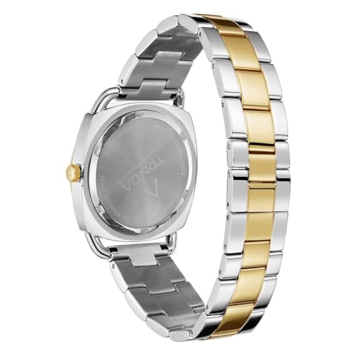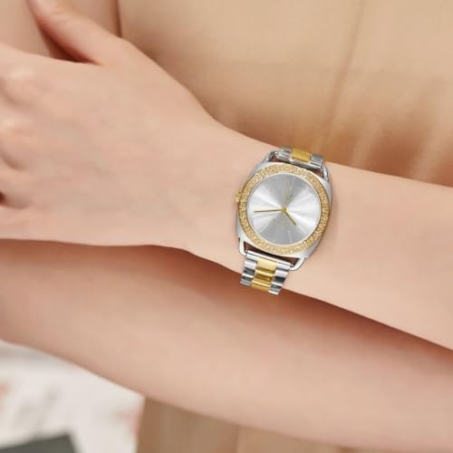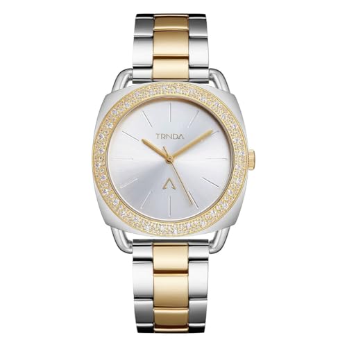 TRNDA - ساعة للنساء من ترندا، بهيكل فضي من الفولاذ المقاوم للصدأ وسوار ذهبي فضي من الفولاذ المقاوم للصدأ