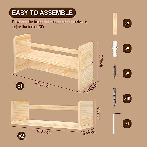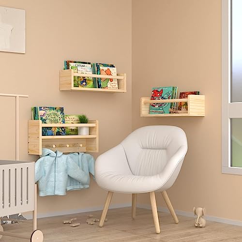 TROAKAOI - رفوف كتب لغرفة الاطفال من تروكاوي، مجموعة من 3 رفوف معلقة من الخشب الطبيعي لتزيين جدران غرفة الاطفال، رف كتب لغرفة الاطفال والحمام والمطبخ والتخزين والمنظم، مفروك بالزيت