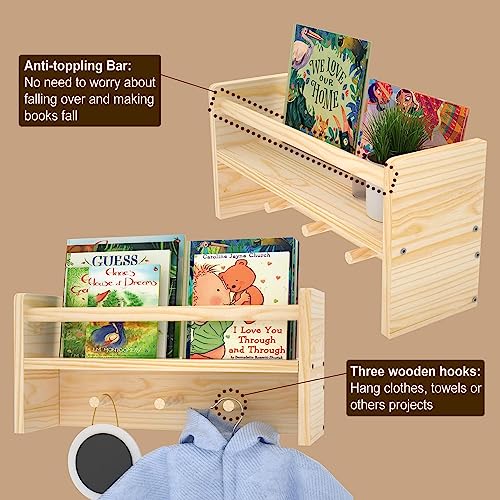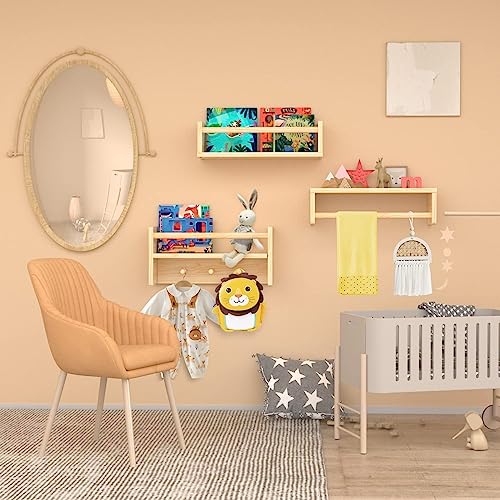 - 🌳 أرفف حائط عائمة مع خطافات - أرفف كتب جدارية مطورة من تروكاوي مع ثلاثة خطافات لغرفة الأطفال وغرفة الأطفال، منظم رائع لتخزين كتب وألعاب الأطفال والحفاظ عليها مرتفعة ومرتبة. توفر مساحة تخزين أفضل تنظيمًا للغرفة، كما أن الألوان والتصميمات الكلاسيكية هي جزء ممتاز من ديكور الحائط.