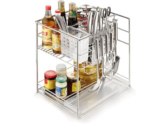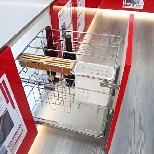 - ✅ كل حاجة في مكانها – أقسام مخصصة للزجاجات (زيت، خل)، سلة شفافة للبهارات، وحامل سكاكين آمن للحفاظ على نظافة مطبخك.