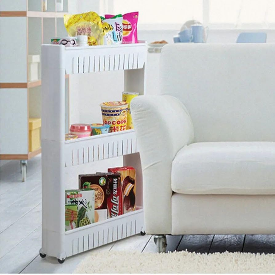 Generic - منظم ترولي بعجلات ذكية لتسهيل الحركة بين أركان المنزل، تصميم عملي لتخزين وتنظيم الزجاجات والمنظفات والبرطمانات، يوفر المساحة ويمنح شكلاً مرتباً وأنيقاً للمنزل. (قطعه 3 دور)
