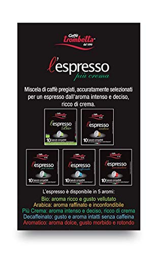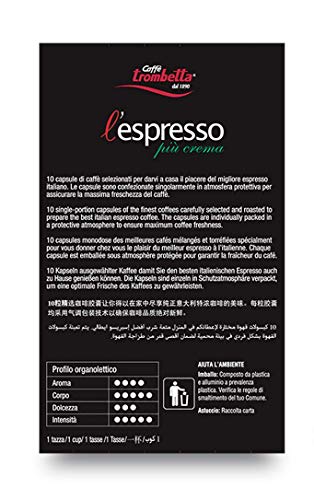 - كريم ليسبريسو بيو من ترومبيتا، تحميص داكن. قهوة إيطالية. متوافق مع اسبريسو. مجموعة من 8 علب بإجمالي 80 كبسولة.