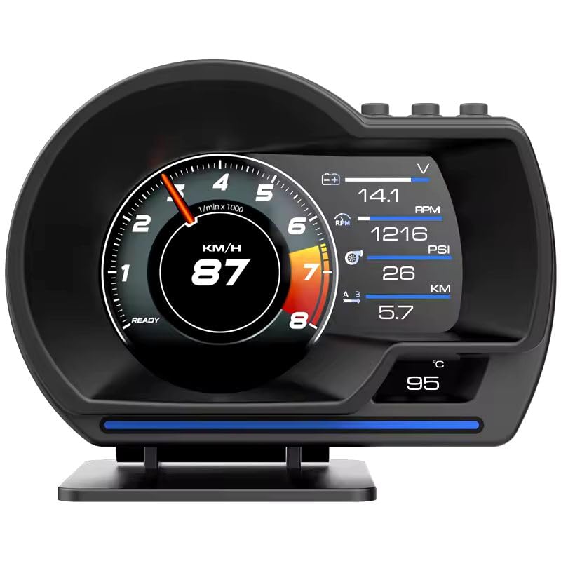 - أحدث A501 Obd2 سيارة رئيس يصل عرض HUD سيارة ذكية درجة حرارة الماء والزيت توربو RPM مقياس عداد المسافات الرقمي إنذار الأمن السيارات متر