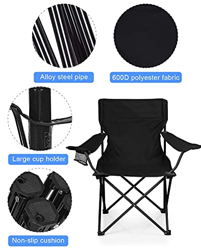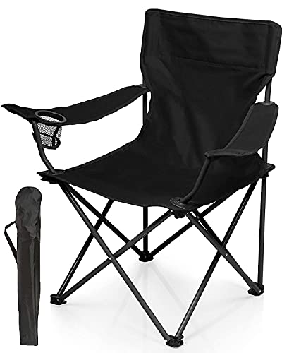Trongle - كرسي تخييم قابل للطي وصغير وبوزن خفيف مع حامل أكواب، مقاوم لرذاذ الماء وللعوامل الجوية، بحجم محمول للاستخدام الخارجي والصيد والمهرجانات والشاطئ والتخييم من ترونجل، لون أسود، 52 سم×52 سم×87 سم