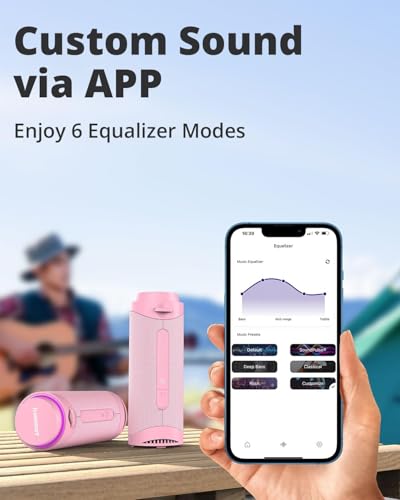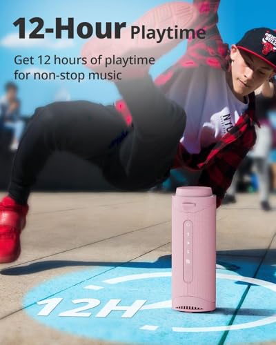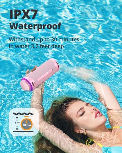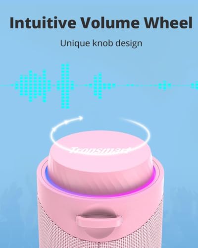Tronsmart - مكبر صوت بلوتوث T7 30 وات من ترونسمارت لاسلكي محمول مع أضواء ليد وصوت ستيريو IPX7 AUX Micro SD بطاقة TF وردي