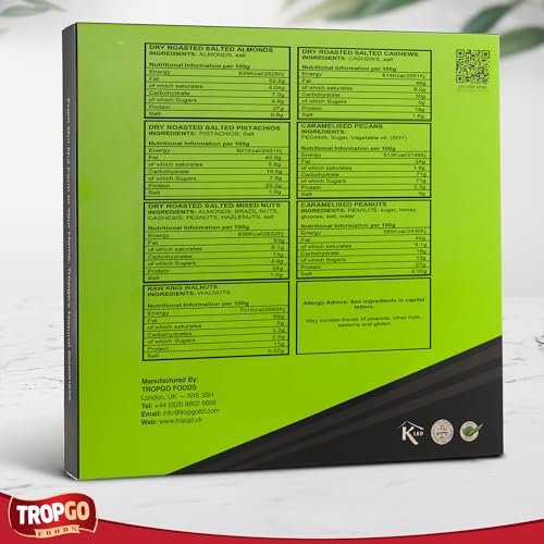 - مجموعة مختارة من 7 أنواع فاخرة من المكسرات - يقدم صندوق هدايا المكسرات الخضراء تشكيلة مغرية من أجود أنواع المكسرات لدينا، ولكل منها نكهته المميزة. في الداخل، ستجد كمية وفيرة من اللوز والجوز والفول السوداني المزجج بالعسل والكاجو والجوز المزجج بالعسل والفستق والمكسرات المختلطة، وجميعها مزروعة بعناية ومختارة يدويًا من قبل مزارعينا المتفانين من جميع أنحاء العالم..