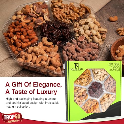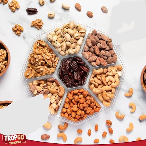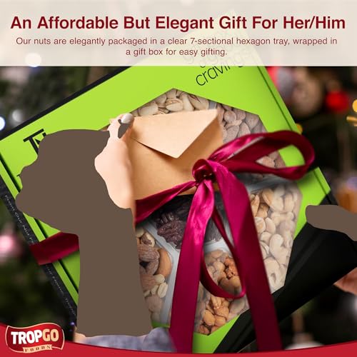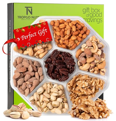 Tropgo - سلة هدايا للعام الجديد والكريسماس، سلة هدايا مكسرات مختلطة (7 تشكيلات) طبق ترتيب باقة الطعام، هدايا عيد الميلاد، صندوق وجبات خفيفة صحية للرجال والنساء من تروبجو