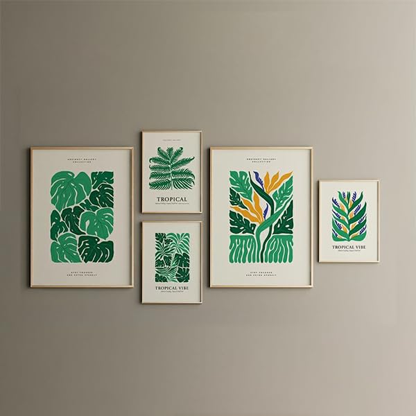 - تصميم أنيق: مجموعة من 5 قطع فنية جدارية متناسقة تتميز بالتصوير الفني والمطبوعات النباتية والطباعة في لوحة ألوان محايدة متطورة
