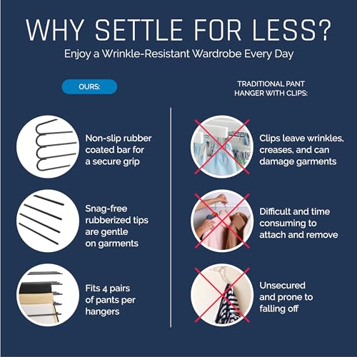 - مصنوعة من الصلب ومطلية بطبقة سوداء مانعة للانزلاق، شماعات البناطيل المتعددة هذه مثالية للحفاظ على البنطلونات مرتبة.
