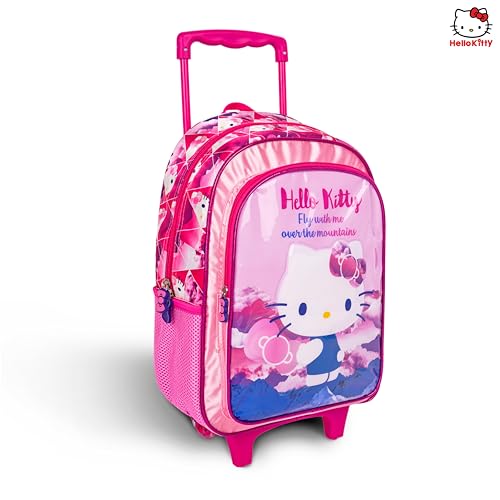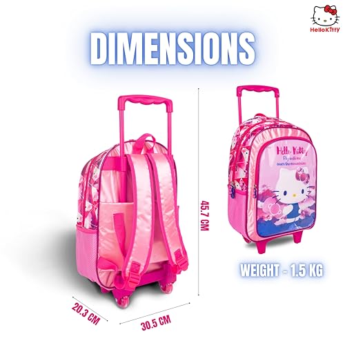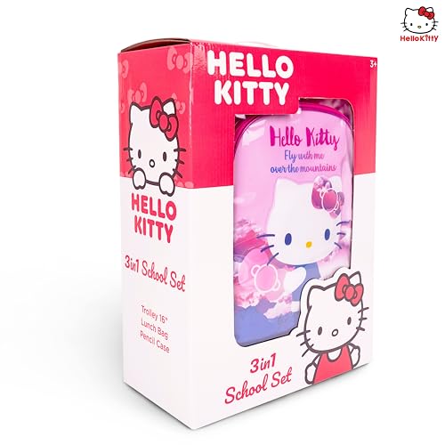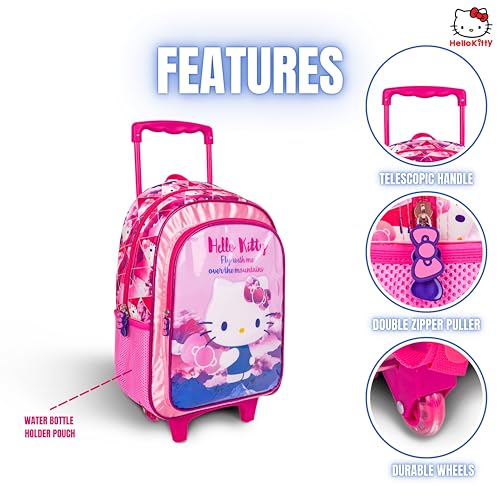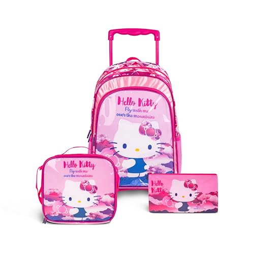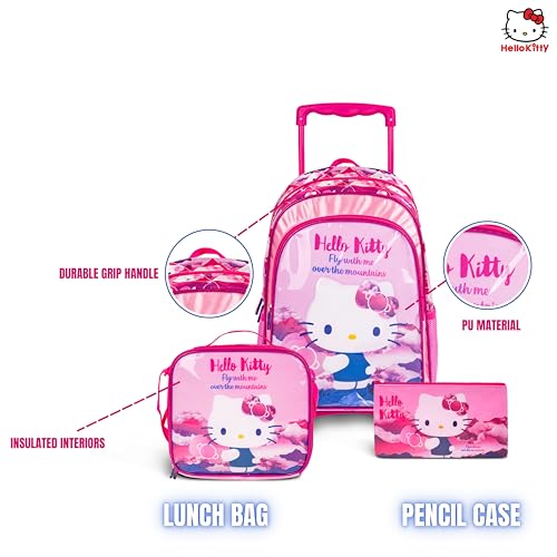 TRUCARE - تروكير مجموعة شنط مدرسية بعجلات للاطفال 3 في 1 بتصميم هالو كيتي مقاس 16 انش من سانريو - شنطة ظهر مريحة، شنطة غداء معزولة ومقلمة، خفيفة الوزن ومتينة للطلاب بعمر 6 سنوات فما فوق - مثالية للسفر والمدرسة للبنات