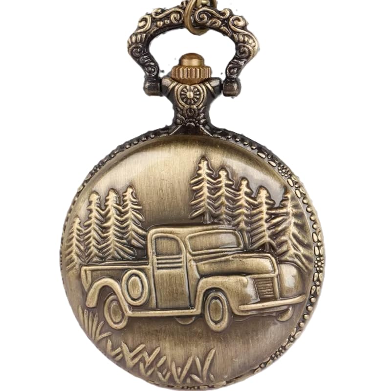 Generic - ساعة جيب كوارتز بتصميم بسيط منحوت من البرونز بتصميم شاحنة فينتاج مناسبة كهدية للرجال والنساء