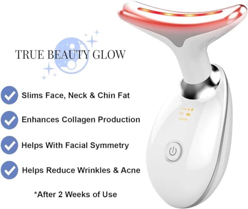 Keeplus - جهاز تدليك الوجه ترو بيوتي جلو، سبعة ألوان لتدليك الرقبة وشد الوجه ومضاد للتجاعيد ومقاوم الشيخوخة مناسب لتدليك الوجه والرقبة والعناية بالبشرة (أبيض)
