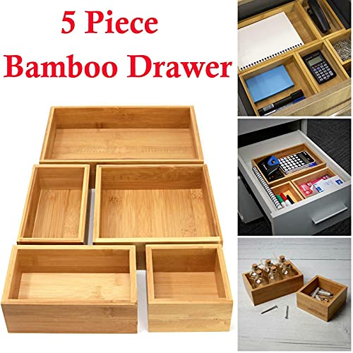 True Face - منظم أدراج من البامبو، طقم صناديق تخزين متعددة الاستخدامات مثالي للاستخدام في المنزل والمكتب بأحجام متنوعة من ترو فيس، طقم من 5 قطع