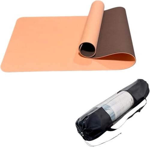 TRUE FIT - سجادة لتمارين اليوجا، سجادة سميكة مضادة للانزلاق من المطاط المرن الآمن بيئيًا للياقة البدنية والبيلاتس للرجال والنساء، مقاس 1.83 م × 61 × 0.6 سم مع شنطة تخزين متضمنة من ترو فيت® (برتقالي-بني)