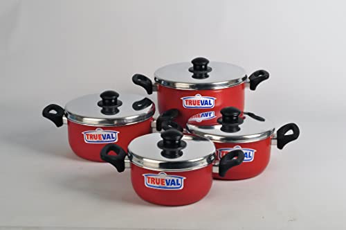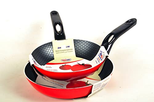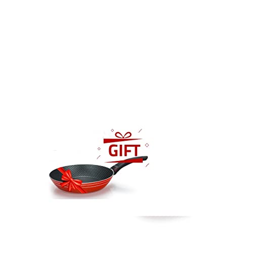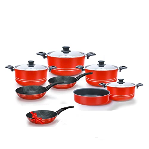 Trueval - طقم اواني للطهي من تروفال 11 قطعة مع مقلاة هدية مجانية مقاس 16، أحمر، ألومنيوم، غير لاصق