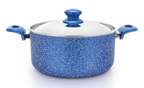 Trueval - طقم 13 قطعة من تروفال وعاء 16-18 - 22-28 - مقلاة 24 - صينية 22 - بريوش 12 - رف تحميص - تقديم جرانيت ازرق لا يلتصق
