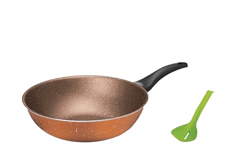 Trueval - طاسة قلي عميقة مع قطعة توزيع باللون النحاسي مع بقع بيضاء من تروفال، 26 سم