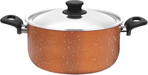 Trueval - قدر طبخ من تروفال، مصنوع من الألومنيوم، بلون نحاسي جرانيت، سطح غير قابل للالتصاق، مقاس 22 سم. يأتي مع غطاء محكم، مناسب للاستخدام الداخلي والخارجي ومقاوم للبهتان