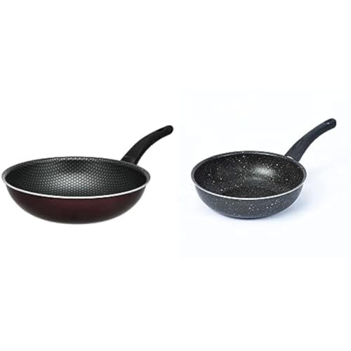 Trueval - مجموعة مكونة من طاسة قلي عميقة 28 سم من تروفال، احمر غامق + طاسة قلي عميقة من الجرانيت من لازورد، 24 سم، اسود، سبيكة صلب