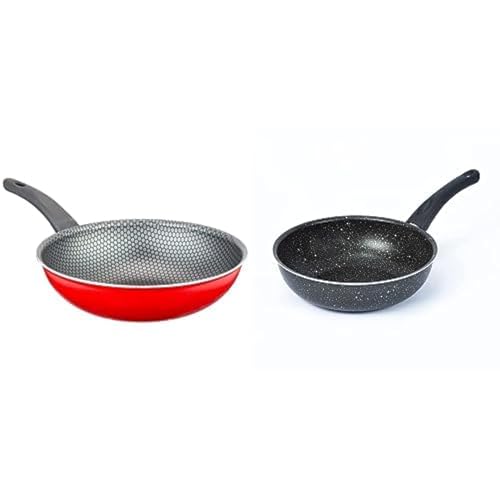 Trueval - طاسة قلي غويطة مقاس 28 سم بلون احمر من تروفال مع الجرانيت لازورد 24 اسود سبيكة صلب