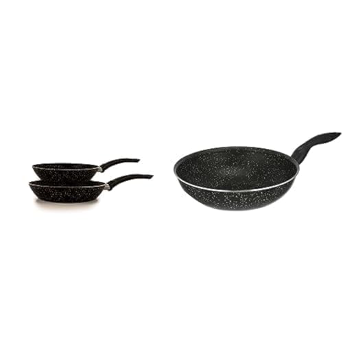Trueval - طقم طاسة قلي من قطعتين مقاس 16-22 بلون أسود من تروفال + طاسة قلي عميقة مقاس 28 سم بلون أسود من تروفال، الألومنيوم
