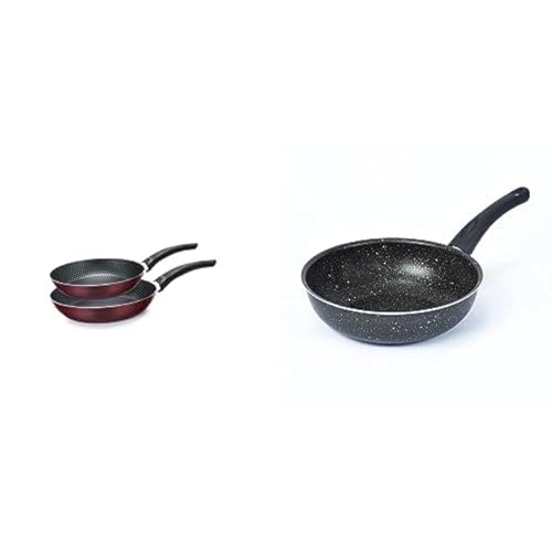 Trueval - طقم طاسة قلي من تروفال بمقاس 16-22 سم أحمر غامق قطعتين + غويطة جرانيت لازورد 24 أسود