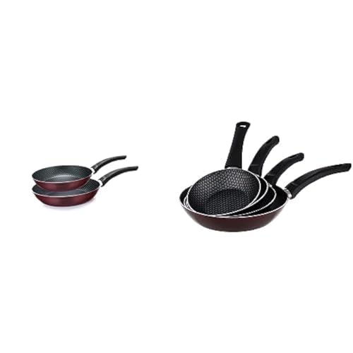 Trueval - طقم طاسات قلي مكون من قطعتين مقاس 16-22 تروفال احمر غامق وطقم 4 قطع مقاسات 16-18-20-24 تيمبرد جلاس