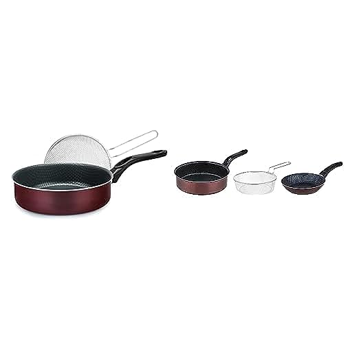Trueval - طاسة قلي مع شبكة أحمر غامق + مقاس 22 + مصفاة تحميص + 20 من تروفال سبيكة صلب