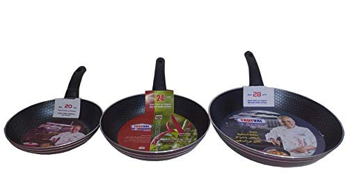 Trueval - مقلاة من تروفال - 3 قطع - مقاسات 20 و 24 28 سم معدن احمر